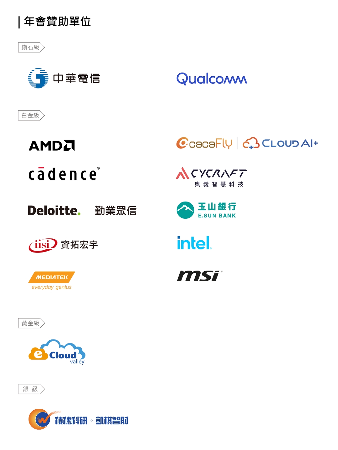 贊助單位:中華電信 CHT、高通 Qualcomm、AMD、聖洋科技 cacaFly、Cadence、